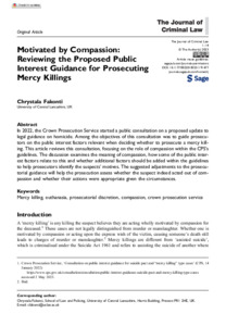 Fakonti, Chrystalla (2025) Motivated by Compassion: Reviewing the Proposed Public Interest Guidance for Prosecuting Mercy Killings. Journal of Criminal Law, 89 (2). pp. 91-104. ISSN 0022-0183
