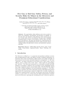 Free Guy or Bad Guy: Safety, Privacy, and Security Risks for Minors in the Metaverse and Prominent Educational Considerations.