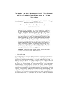 Kasenides, Nicos orcid iconORCID: 0000-0002-1562-3839, Piki, Andriani orcid iconORCID: 0000-0003-0376-1713 and Paspallis, Nearchos orcid iconORCID: 0000-0002-2636-7973 (2023) Exploring the User Experience and Effectiveness of Mobile Game-Based Learning in Higher Education. International Conference on Human-Computer Interaction, 14026 . pp. 72-91. ISSN 0302-9743