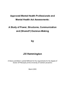 Approved Mental Health Professionals and Mental Health Act Assessments: A Study of Power, Structures, Communication and (Shared?) Decision-Making.