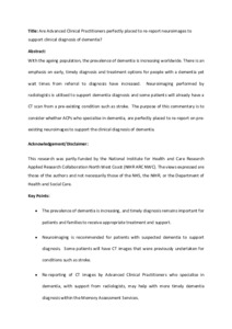 Are Advanced Clinical Practitioners perfectly placed to re-report neuroimages to support clinical diagnosis of dementia?