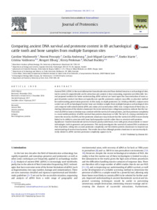 Comparing ancient DNA survival and proteome content in 69 archaeological cattle tooth and bone samples from multiple European sites.