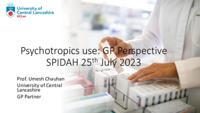 Chauhan, Umesh orcid iconORCID: 0000-0002-0747-591X (2023) Psychotropics use: GP Perspective. In: Responsibilities of Prescribing - A Lens on Psychotropic Medication, 25.7.23, Online.