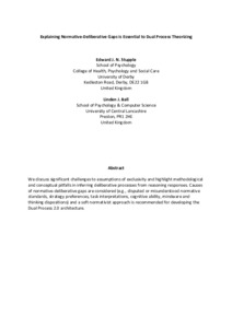 Stupple, Edward J. N. and Ball, Linden orcid iconORCID: 0000-0002-5099-0124 (2023) Explaining normative–deliberative gaps is essential to dual-process theorizing. Behavioral and Brain Sciences, 46 . ISSN 0140-525X