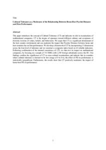 Introducing Cultural Tolerance: Developing a Composite Index and Exploring its Impact.