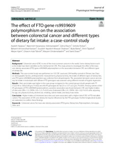 The effect of FTO gene rs9939609 polymorphism on the association between colorectal cancer and different types of dietary fat intake: a case-control study.