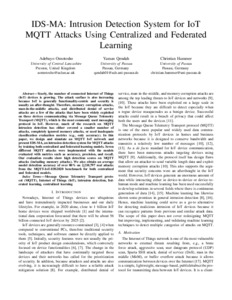 IDS-MA: Intrusion Detection System for IoT MQTT Attacks Using Centralized and Federated Learning.