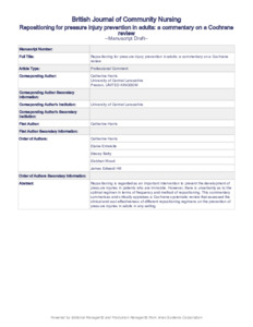 Repositioning for pressure injury prevention in adults: a commentary on a Cochrane review.
