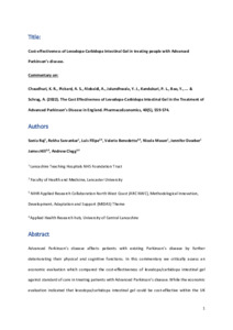 Cost-effectiveness of Levodopa-Carbidopa Intestinal Gel in treating people with Advanced Parkinson’s disease.
