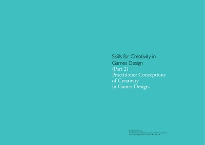 Skills for Creativity in Games Design (Part 2) Practitioner Conceptions of Creativity in Games Design.