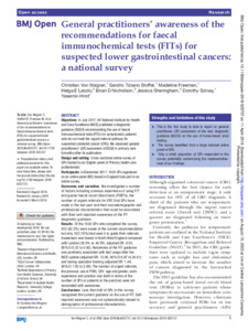 General practitioners’ awareness of the recommendations for faecal immunochemical tests (FITs) for suspected lower gastrointestinal cancers: a national survey.