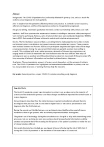 Conclusion The post-pandemic recovery of cancer care is dependent on the recovery of primary care. The COVID-19 pandemic has highlighted and exacerbated vulnerabilities in primary care but has also provided new ways of working that may help the recovery.