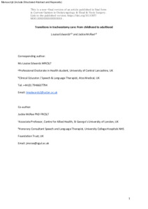 Edwards, Louise and McRae, Jackie (2023) Transitions in tracheostomy care: from childhood to adulthood. Current Opinion in Otolaryngology & Head & Neck Surgery . ISSN 1068-9508