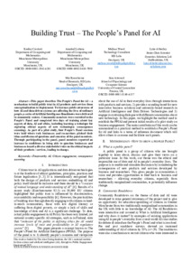 This paper describes The People’s Panel for AI – a mechanism to build public trust in AI products and services from conceptualization to deployment. To increase public awareness of how AI and data-driven systems are affecting the lives of ordinary people, a series of Artificial Intelligence Roadshows were delivered in community centers. Community members were recruited to the People’s Panel and completed two days of training about key aspects of data, AI and ethics, including learning a technique for exploring ethical aspects of new technologies (consequence scanning). As part of a pilot study, four People’s Panel sessions were held where tech businesses and researchers pitched their ideas and discussed questions and concerns of the panel members. Through participating in the panel, panel members reported an increase in confidence in being able to question businesses and businesses heard a diverse stakeholder voice on the ethical impacts of their products / services, leading to change.