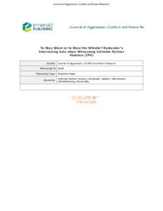 Griffin, Abby and Worthington, Rachel Elizabeth (2023) To stay silent or to blow the whistle? Bystander’s intervening acts when witnessing intimate partner violence (IPV). Journal of Aggression, Conflict and Peace Research . ISSN 1759-6599