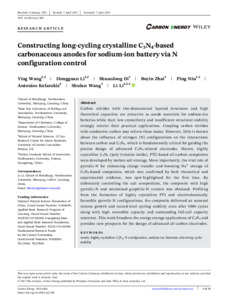Constructing long‐cycling crystalline C 3 N 4 ‐based carbonaceous anodes for sodium‐ion battery via N configuration control.