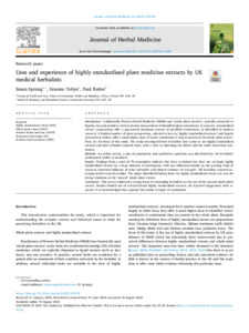 Uses and Experience of Highly Standardised Plant Medicine Extracts by UK Medical Herbalists.