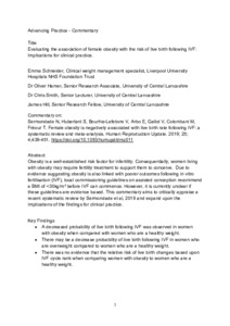 Evaluating the association of female obesity with the risk of live birth following IVF: Implications for clinical practice.
