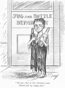 This is a piece by Sir Wilfred Lawson which has its tongue firmly in its cheek. The seemingly joyful nature of the passage highlights the influence of the drinks industry over the state. The powerful illustration shows the reality of the drunkard child and the ironic quote from the poem ‘Oh joy! That in this Christian land Should fall my happy fate.