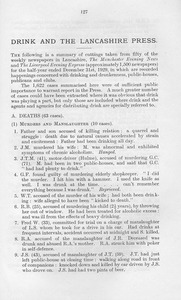 The UK Alliance, the organisation set up to campaign for legal restrictions on drink, presented this digest of Lancashire press reports where drink was involved, for the last six months of 1929. It gives some fascinating insights into behaviour, and attitudes to this, in the late nineteen twenties.
