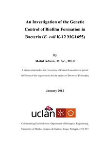 Adnan, Mohd (2012) An Investigation of the Genetic Control of Biofilm Formation in Bacteria (E. coli K-12 MG1655). Post-Doctoral thesis, University of Central Lancashire.