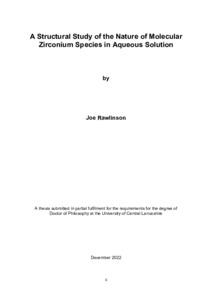 Rawlinson, Joe (2023) A Structural Study of the Nature of Molecular Zirconium Species in Aqueous Solution. Doctoral thesis, University of Central Lancashire.