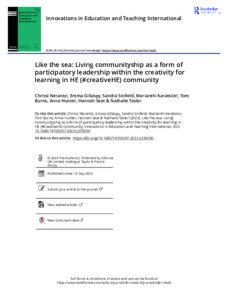 Like the sea: Living communityship as a form of participatory leadership within the Creativity for Learning in HE (#creativeHE) community.