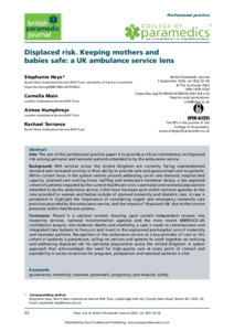 Heys, Stephanie, Main, Camella, Humphreys, Aimee and Torrance, Rachael (2023) Displaced risk. Keeping mothers and babies safe: a UK ambulance service lens. British Paramedic Journal, 8 (2). pp. 52-56.