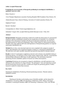 Evaluating the current practice of therapeutic positioning in neurological rehabilitation: a qualitative interview study.