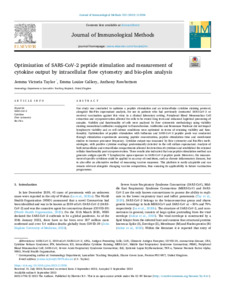 Taylor, Jemma Victoria, Callery, Emma Louise and Rowbottom, Anthony (2023) Optimisation of SARS-CoV-2 peptide stimulation and measurement of cytokine output by intracellular flow cytometry and bio-Plex analysis. Journal of Immunological Methods, 522 . ISSN 0022-1759