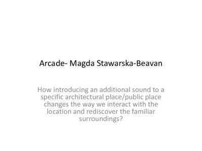 Stawarska-Beavan was invited (by the project curator Georg Weckwerth) to work with Andres Bosshrad to incorporate her sound piece “Arcade”. This resulted in the sonic architecture project KLANGHIMMEL presented at the Museum Quartier in Vienna from 6th June – 1st November 2011.