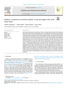 associated support needs of other family members and their understanding of how this relates to their own recovery. The findings firstly suggest the need to recognise children’s relationships with non-abusing family members as a fundamental and interdependent aspect of their recovery in the aftermath of sexual abuse in the