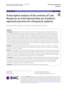 A descriptive analysis of the contents of Care Response, an international data set of patient-reported outcomes for chiropractic patients.