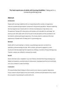 People with Learning disabilities (LD) are marginalised within society and experience reduced occupational participation compared to the general population. Research exploring the lived experiences of adults with LD is limited. Gardening has a long history as an Occupational Therapy (OT) intervention with evidence of its benefits for well-being. Yet, previous work with adults with LD has focused on the perspective of the practitioner and has failed to address participant experience. This study aimed to understand the lived experiences of people with LD taking part in a gardening group.