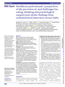 Healthcare professionals’ perspectives of the provision of, and challenges for, eating, drinking and psychological support post-stroke: findings from semi-structured interviews across India.