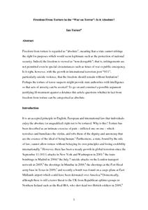 Turner, Ian David orcid iconORCID: 0000-0002-8012-1480 (2011) Freedom From Torture in the "War on Terror": Is it Absolute? Terrorism and Political Violence, 23 (3). pp. 419-437. ISSN 0954-6553