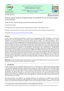 Chaufan, Claudia, Hemsing, Natalie, Heredia, Camila and McDonald, Jennifer (2023) What do experts mean by “misinformation” in the COVID-19 era? A critical scoping review protocol. International Journal of Scholarly Research in Multidisciplinary Studies, 03 (02). 001-010.