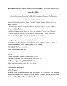 Ankle biomechanics during multi-directional landings in athletes with chronic ankle instability.