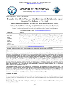 Evaluation of the Effect of Nano and Micro Hydroxyapatite Particles on the Impact Strength of Acrylic Resin: In Vitro Study.