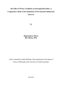Olowe, Ibukunoluwa Emmanuel (2023) The Effect of Water Conditions on Decomposition Rate: A Comparative Study of the Estimation of Post-mortem Submersion Interval. Post-Doctoral thesis, University of Central Lancashire.