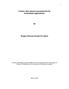 Al-Jaafar, Ruqiya (2023) Carbon dots based nanomaterials for biomedical applications. Doctoral thesis, University of Central Lancashire.