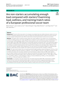 Oliveira, Rafael, Canário-Lemos, Rui, Morgans, Ryland, Rafael-Moreira, Tiago, Vilaça-Alves, José and Brito, João Paulo (2023) Are non-starters accumulating enough load compared with starters? Examining load, wellness, and training/match ratios of a European professional soccer team. BMC Sports Science, Medicine and Rehabilitation, 15 (1).