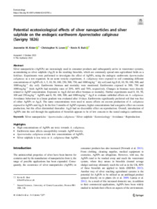 Potential ecotoxicological effects of silver nanoparticles and silver sulphide on the endogeic earthworm Aporrectodea caliginosa (Savigny 1826).