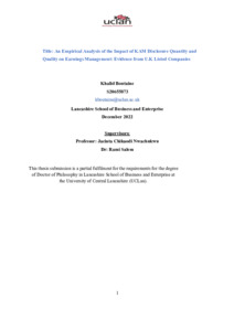 Boutaine, Khalid (2023) An Empirical Analysis of the Impact of KAM Disclosure Quantity and Quality on Earnings Management: Evidence from U.K Listed Companies. Doctoral thesis, University of Central Lancashire.