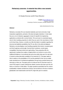 Bremner, Alasdair and Alkandari, Fahad (2011) Refractory concrete: A material that offers new ceramic opportunities. In: International Ceramics Symposium, 2011.
