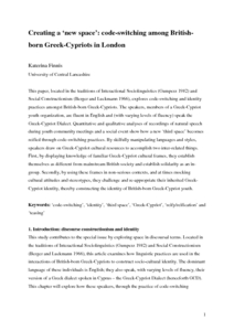 Finnis, Katerina (2013) Creating a ‘new space’: code-switching among British-born Greek-Cypriots in London. Pragmatics and Society, 4 (2). pp. 137-157. ISSN 1878-9714