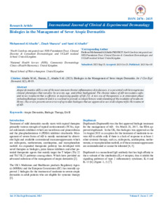Al Abadie, Mohammed, Sharara, Zinah and Al Abadie, Sami (2023) Biologics in the Management of Sever Atopic Dermatitis. International Journal of Clinical & Experimental Dermatology (IJCED) . ISSN 2476-2415