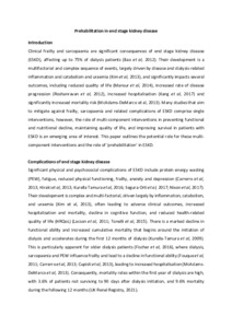 Clinical frailty and sarcopaenia are significant consequences of end stage kidney disease (ESKD), affecting up to 75% of dialysis patients (Bao et al, 2012). Their development is a multifactorial and complex sequence of events, largely driven by disease and dialysis-related inflammation and catabolism and uraemia (Kim et al, 2013), and significantly impacts several outcomes, including reduced quality of life (Mansur et al, 2014), increased rate of disease progression (Roshanravan et al, 2012), increased hospitalisation (Kang et al, 2017) and significantly increased mortality risk (McAdams-DeMarco et al, 2013). Many studies that aim to mitigate against frailty, sarcopaenia and related complications of ESKD comprise single interventions, however, the role of multi-component interventions in preventing functional and nutritional decline, maintaining quality of life, and improving survival in patients with ESKD is an emerging area of interest. This paper outlines the potential role for these multi-component interventions and the role of prehabilitation in ESKD.