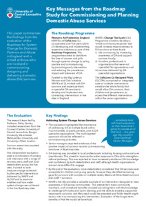 This paper summarises the findings from the evaluation of the Roadmap for System Change for Domestic Violence and Abuse in England and is aimed at those who are involved in