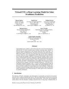 Indaco, Manuel, Gass, Daniel, Fawcett, William, Galvez, Richard, Wright, Paul J. and Muñoz-Jaramillo, Andrés (2023) Virtual EVE: a Deep Learning Model for Solar Irradiance Prediction. In: Workshop at the 37th Conference on Neural Information Processing Systems (NeurIPS), 15 December 2023, New Orleans Convention Center in New Orleans, USA.